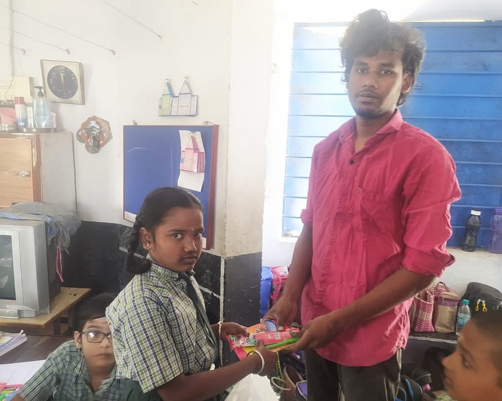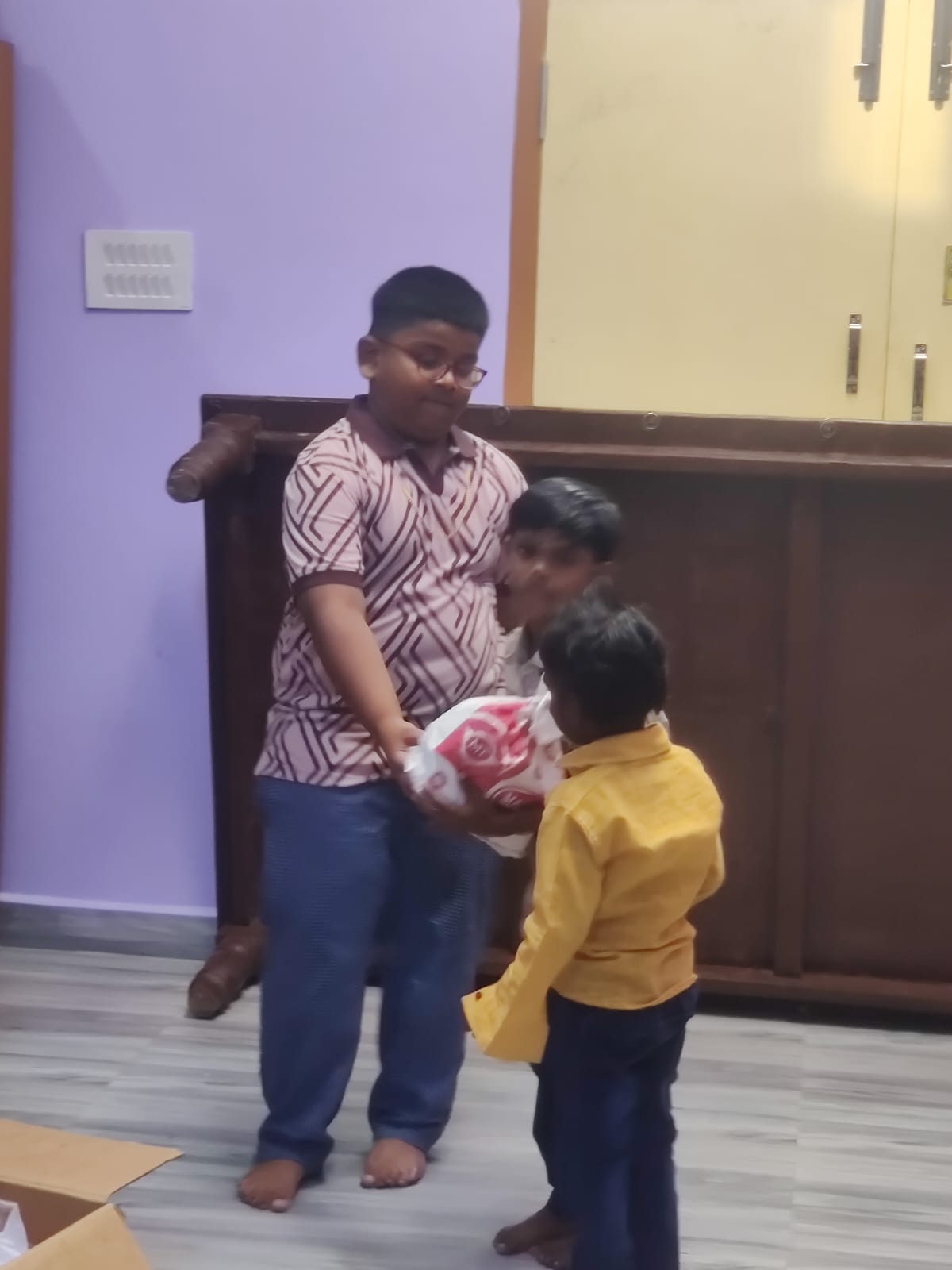 We received notebooks, writing materials, water bottles, a shuttle bat set, a cricket bat set, and a volleyball set from our esteemed donor, Mr. Gandhikota Kishan, and organizer, Mr. Anand Ashokkumar. We are deeply grateful for their support in joining us on our mission to make a positive impact on the lives of children in the ST community