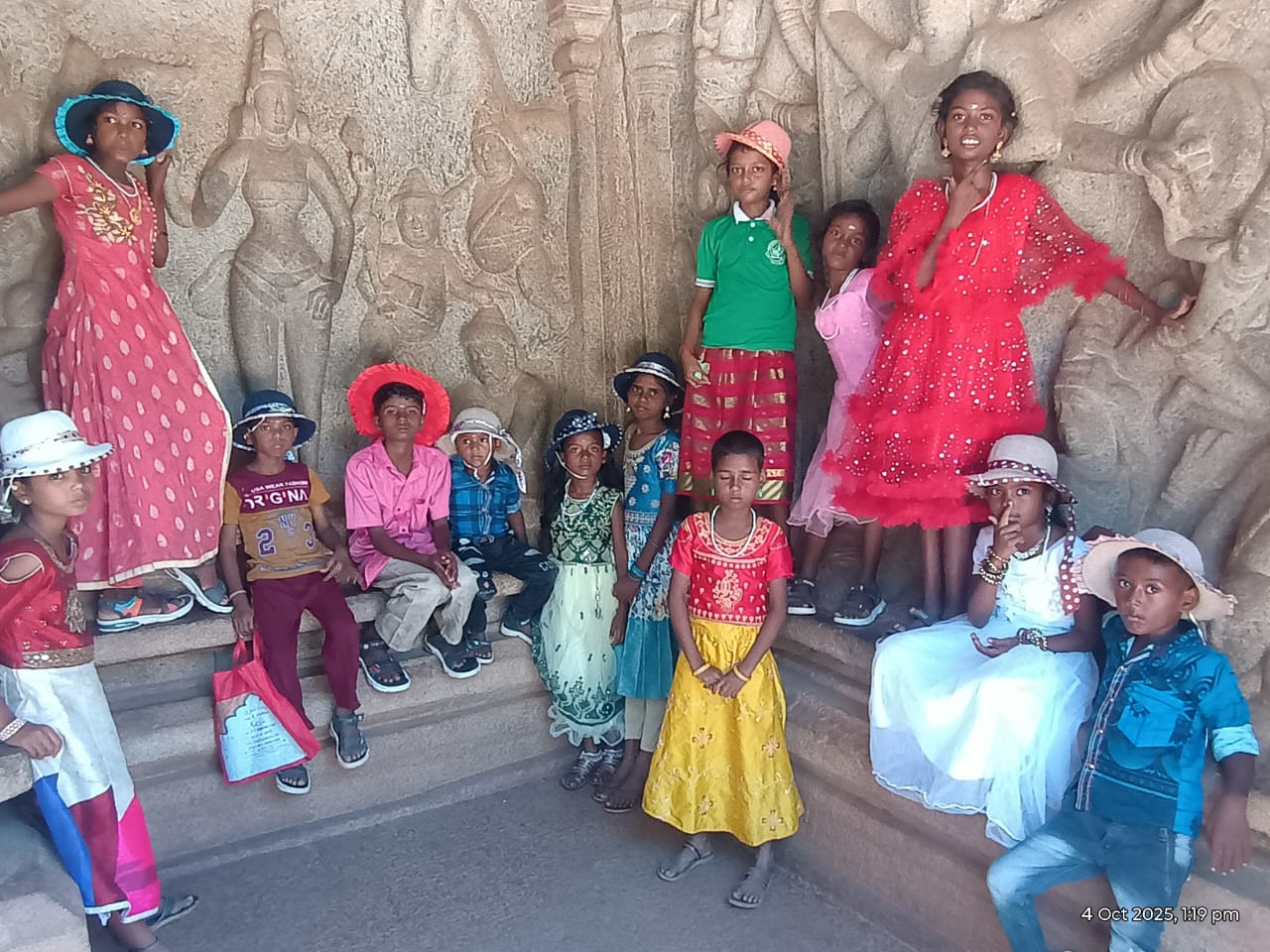 On October 4, 2025, we organized a one-day trip to Mahabalipuram for the children supported by our NGO. They had been eagerly requesting this outing for the past three months. During the quarterly holidays, we finally made it happen, and the kids had a wonderful time. We extend our heartfelt thanks to all our supporters for making this trip possible.